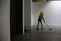 Space Manifesto organises a collective meditation session especially created for ASFA'S spacial currentscape and its problematic energy surges. This part lasted two hours and it included interactive sessions between Space and visitors as well as moments of yoga through mopping practices at Kessanlis gallery . Space gave various instructions to each participant of the meditation sessions. Only through meditation people could help Space find her missing communist nails and then participate at the next parts of the performance.